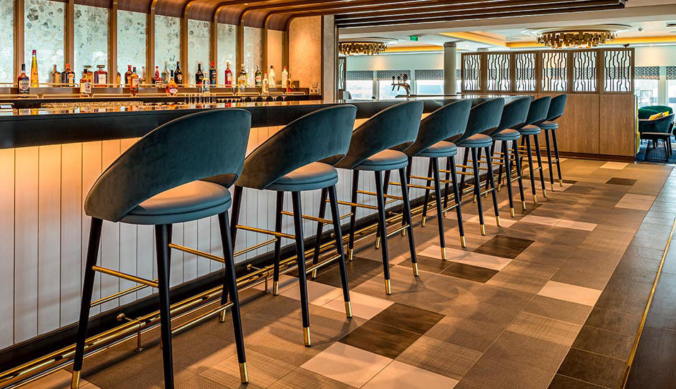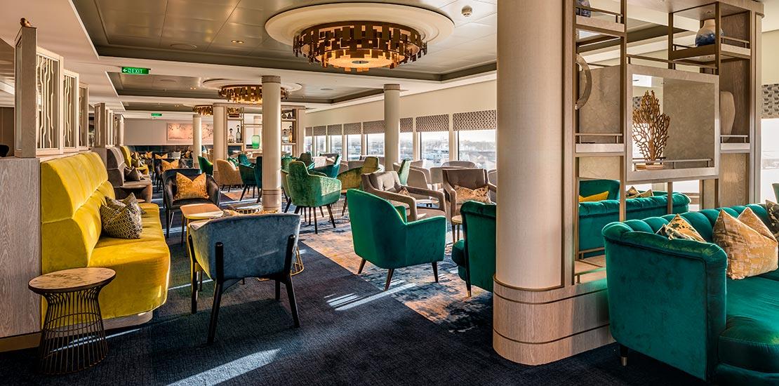 The Spirit of Adventure, with its twin Spirit of Discovery, first cruise ships of the luxury British company Saga Cruises, are small-sized vessels designed to meet the taste and needs of a selected ‘over 50’ clientele. With a contemporary, sober, and elegant concept they offer a warm and welcoming atmosphere, almost familiar, thanks to the informal furnishings enriched by refined artworks distributed all over the public areas. For both vessels Interna was called to implement the complete fit-out of three areas, the Britannia Lounge on deck 12, the Gym on deck 13, the Laundrette on decks 8 and 10.