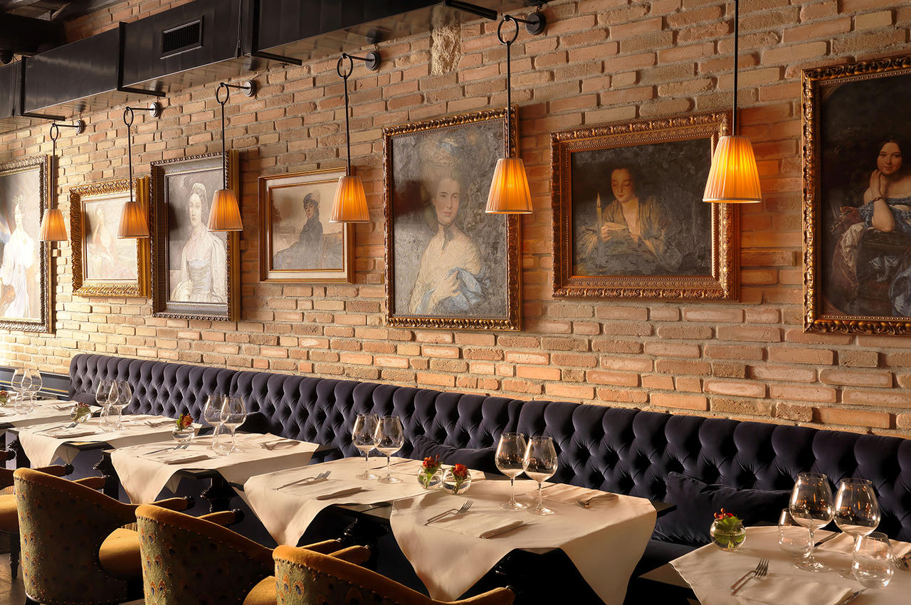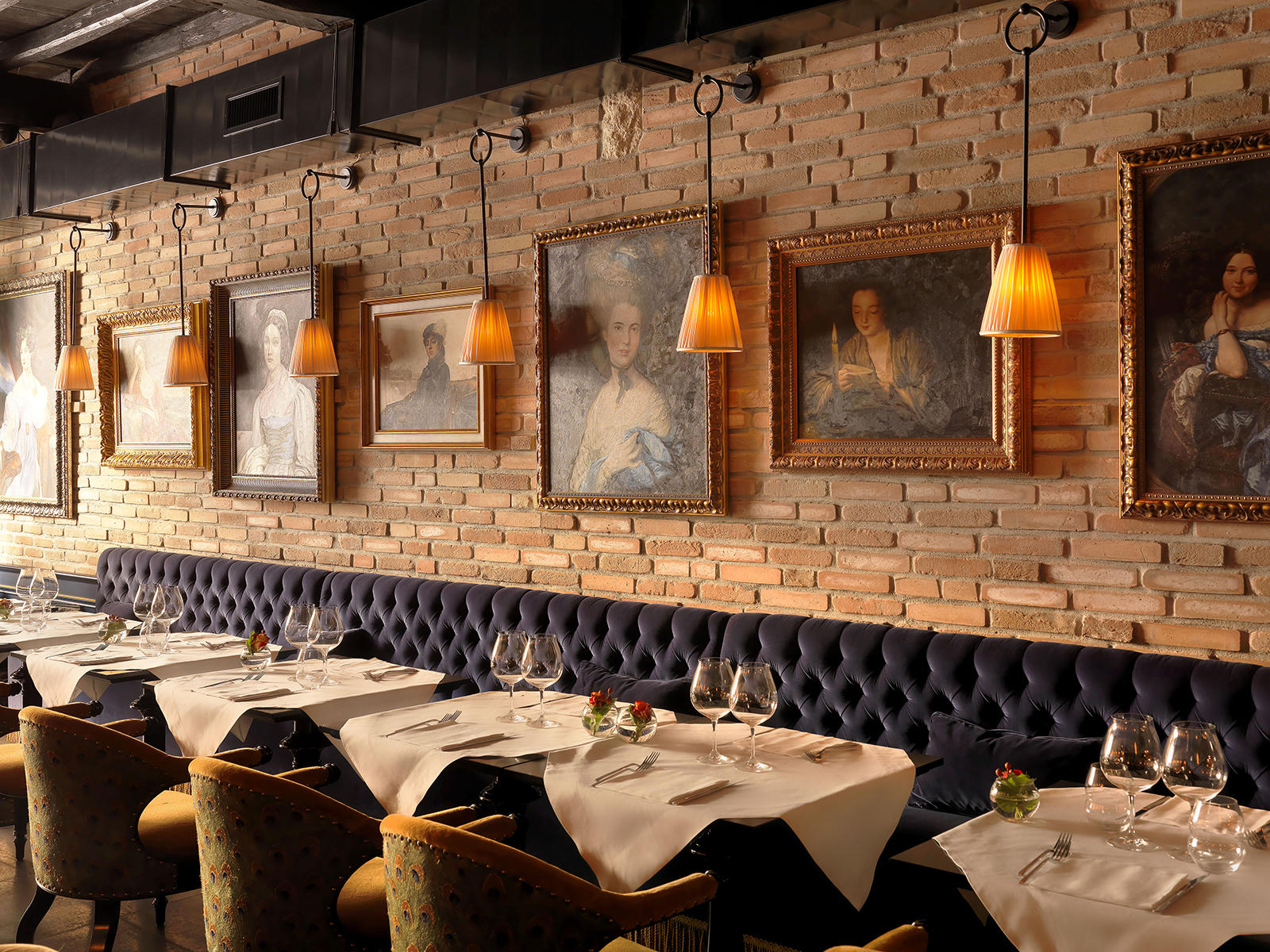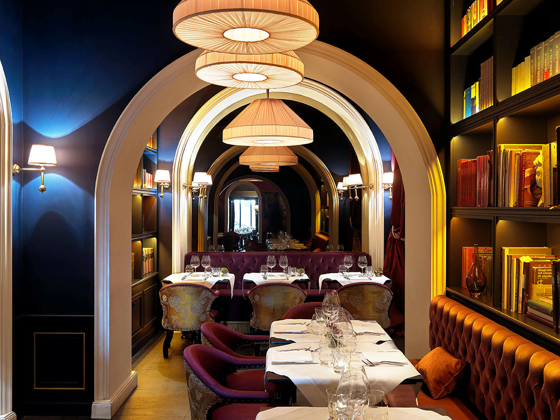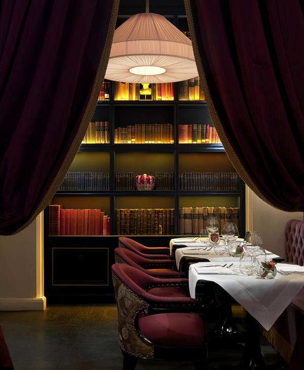 Interna ha prodotto e installato tutti gli arredi sciolti in questo ristorante - tavoli, sedie, poltrone, poltroncine, panche, console e tavolini – in parte articoli della collezione Les Grands Classiques de Jacques Garcia creata in esclusiva per Interna nel 2005, in parte raffinati mobili disegnati e prodotti ad-hoc per il progetto.