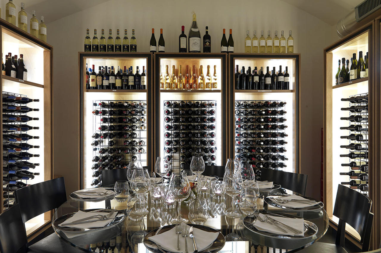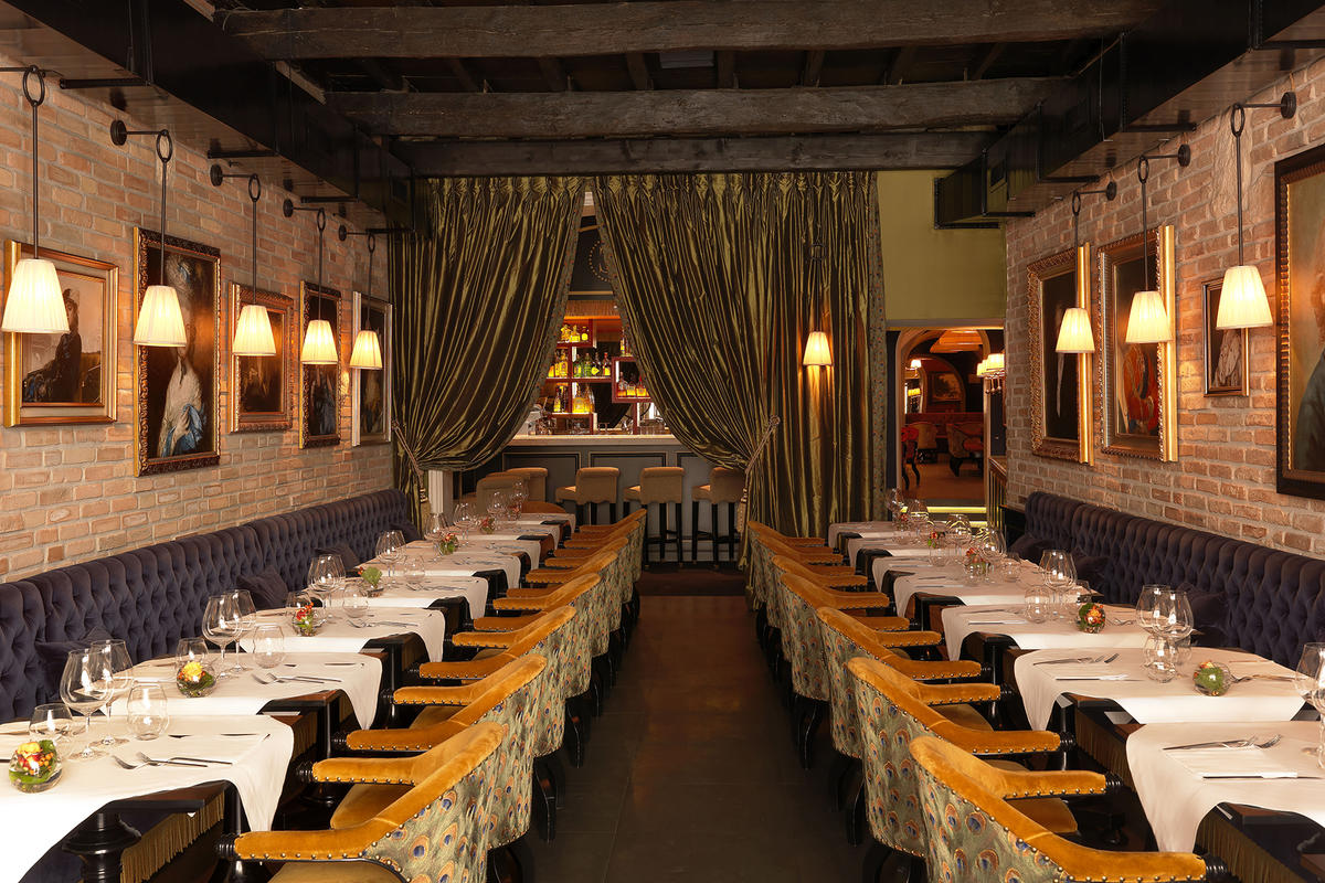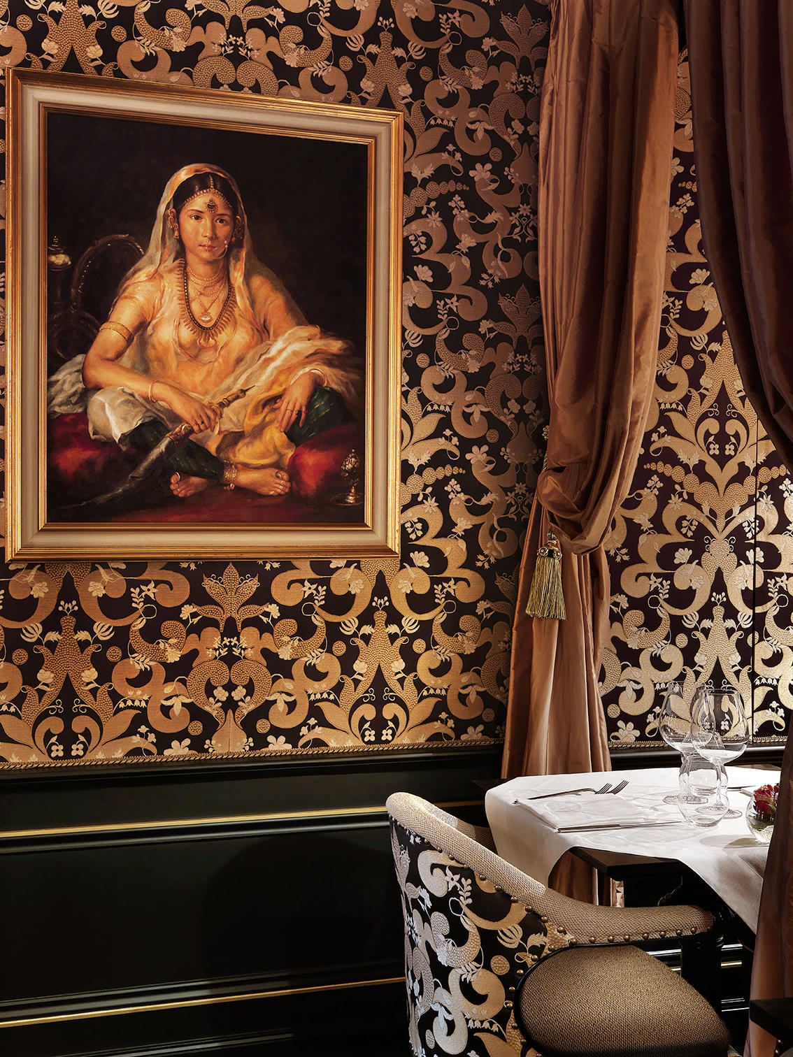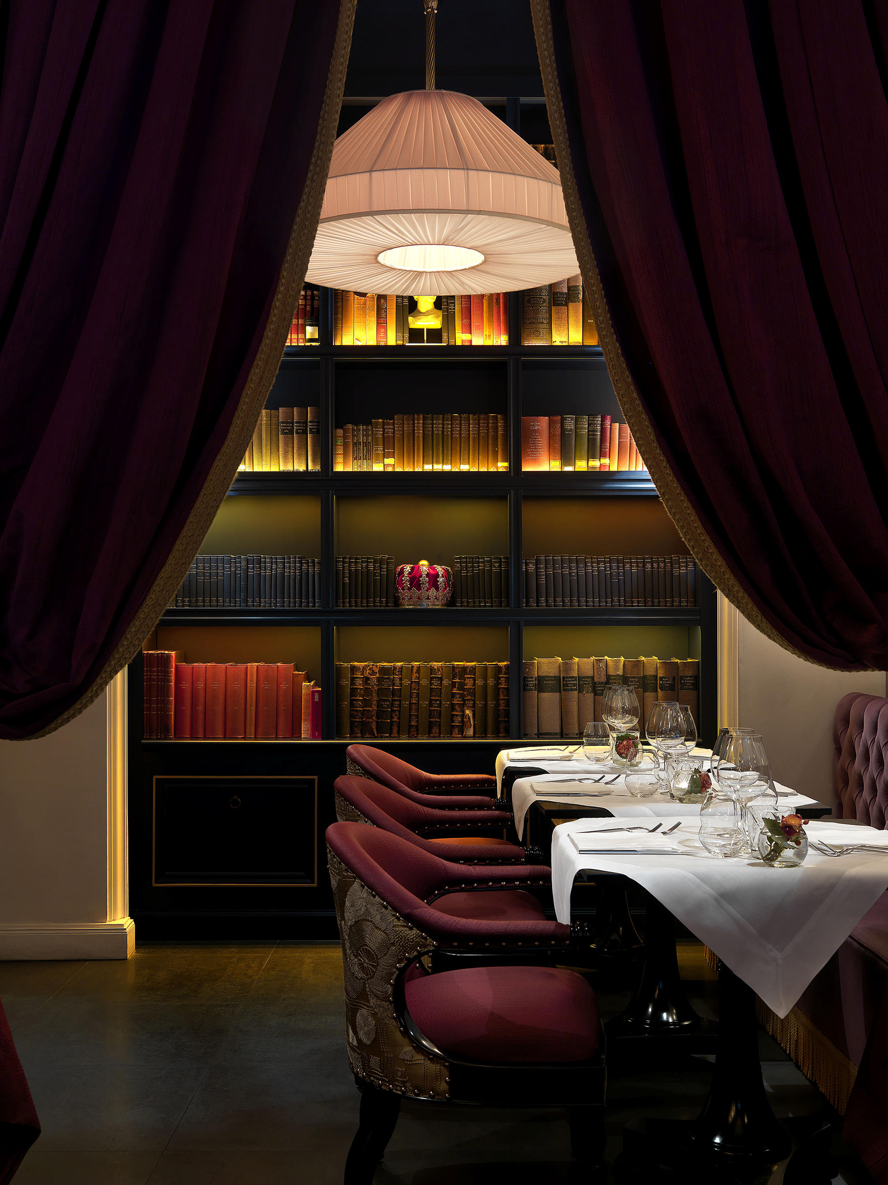 Interna ha prodotto e installato tutti gli arredi sciolti in questo ristorante - tavoli, sedie, poltrone, poltroncine, panche, console e tavolini – in parte articoli della collezione Les Grands Classiques de Jacques Garcia creata in esclusiva per Interna nel 2005, in parte raffinati mobili disegnati e prodotti ad-hoc per il progetto.