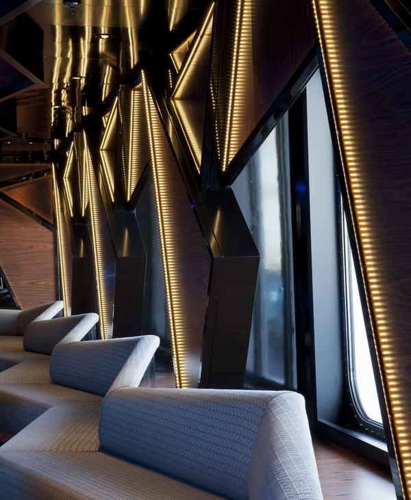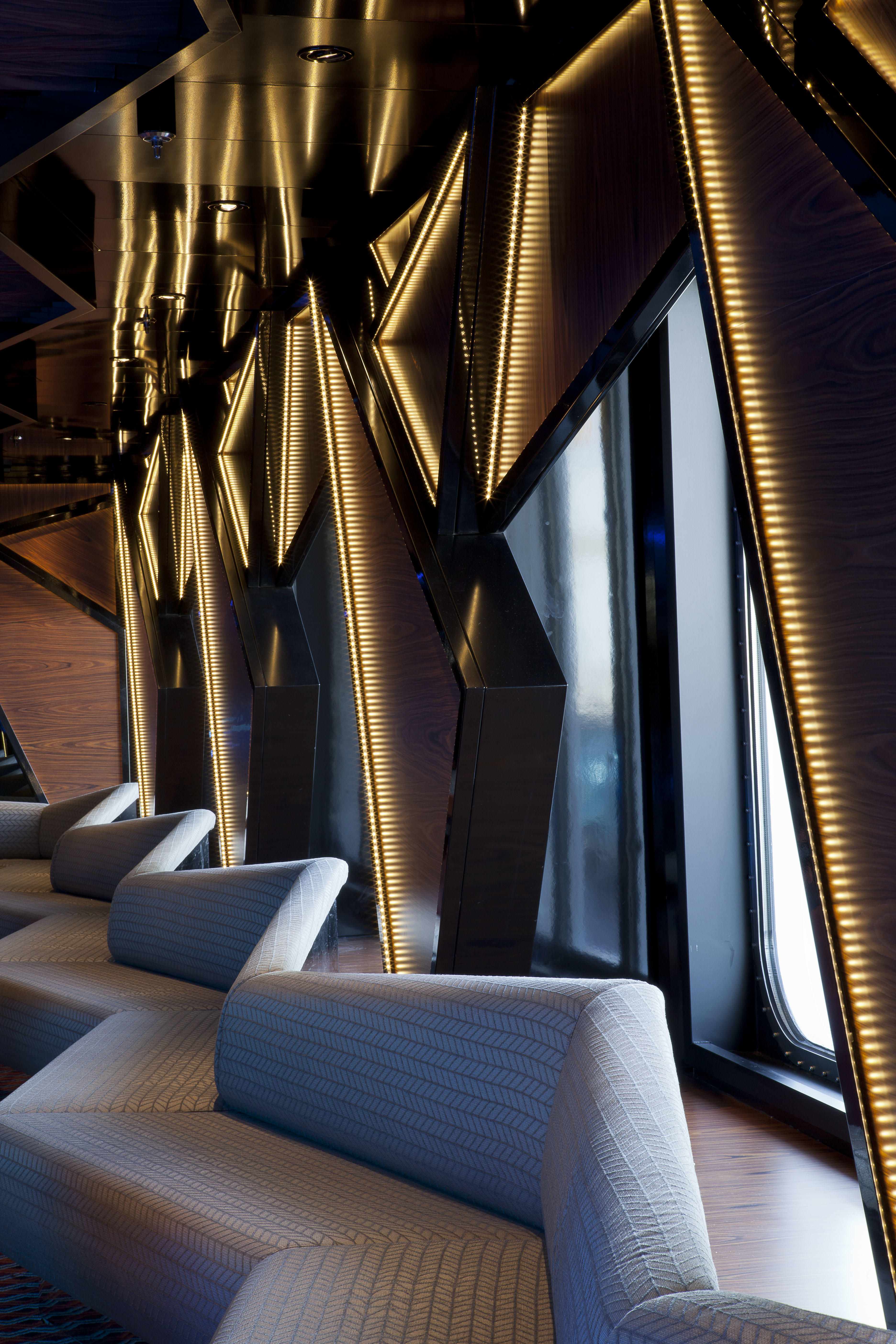 Diadema è per le aree pubbliche più prestigiose opera di Interna. Il design del Maestro statunitense Joseph Farcus, dalle ambientazioni ricche e spumeggianti, è stato eseguito da Interna, chiavi in mano, nelle aree Aft Lounge, Piano Bar e Cinema 4D, con implementazione di lavori di pavimentazione e di rivestimento, oltre alla realizzazione e al montaggio di tutti gli arredi fissi e mobili, dell’illuminazione, dell’artwork. Il tutto nel rispetto di alti standard qualitativi oltre che della normativa navale internazionale in tema di sicurezza e salute.