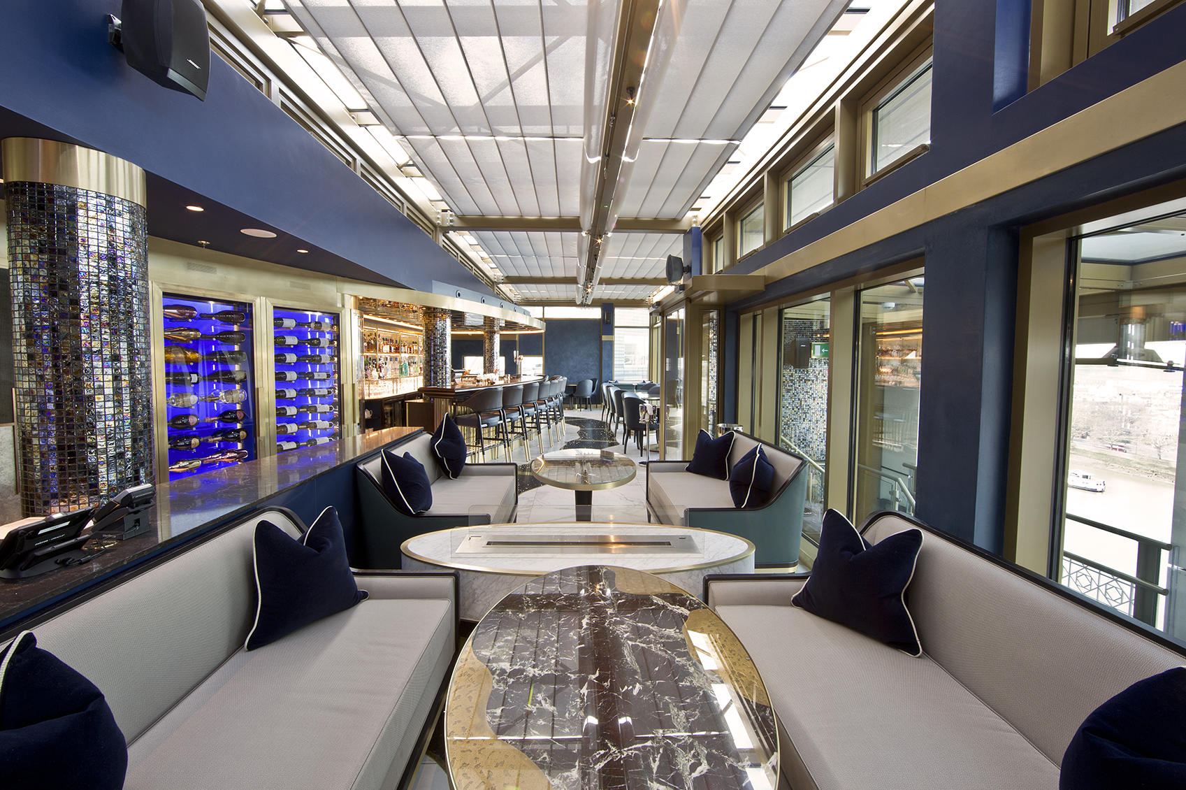 Fiore all'occhiello di questo progetto è l'elegante terrazza panoramica al quattordicesimo piano che offre impareggiabili viste sul Tamigi e sull’intera città. Per questo hotel, precursore di tendenze, Interna è stata chiamata a fornire i ‘loose’ di hall, ristoranti e bar, inclusa la terrazza panoramica. Divani, sedie, poltrone, tavoli, cabinet, interamente prodotti su disegno esclusivo e in gran parte pezzi unici, sono stati prodotti nel rispetto dei più alti standard qualitativi e con l’impiego di materie prime e tessuti selezionati.