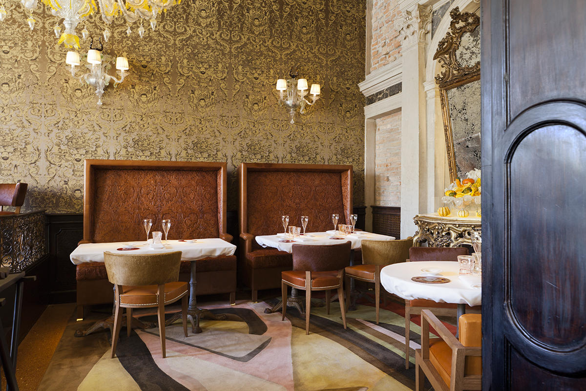 Il Quadri, eclettico storico caffè- ristorante del XVIII secolo in Piazza San Marco a Venezia, di proprietà della famiglia Alajmo dal 2010, ha riaperto i battenti nel 2018 dopo un capillare restauro. La trasformazione ha ridato vita alla magia originaria del luogo in un ambiente romantico e quasi surreale.