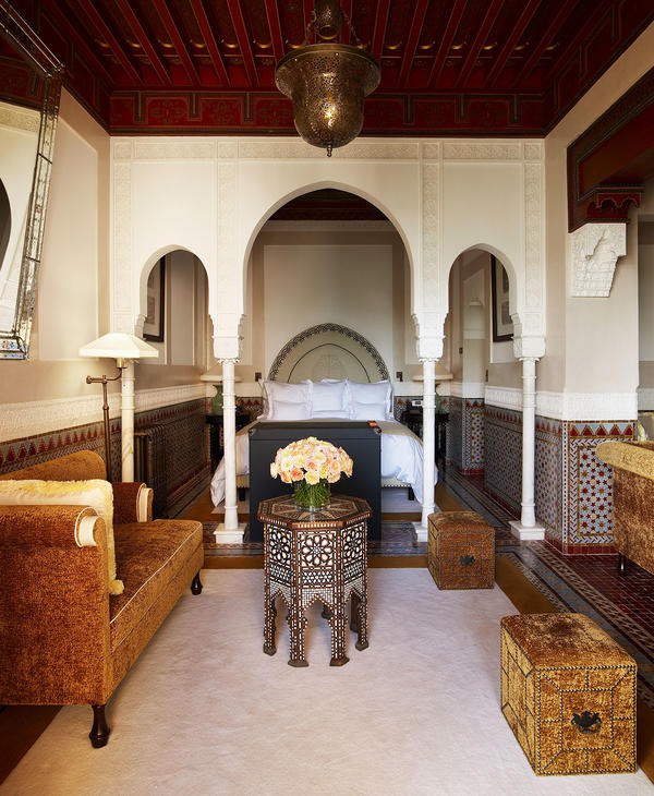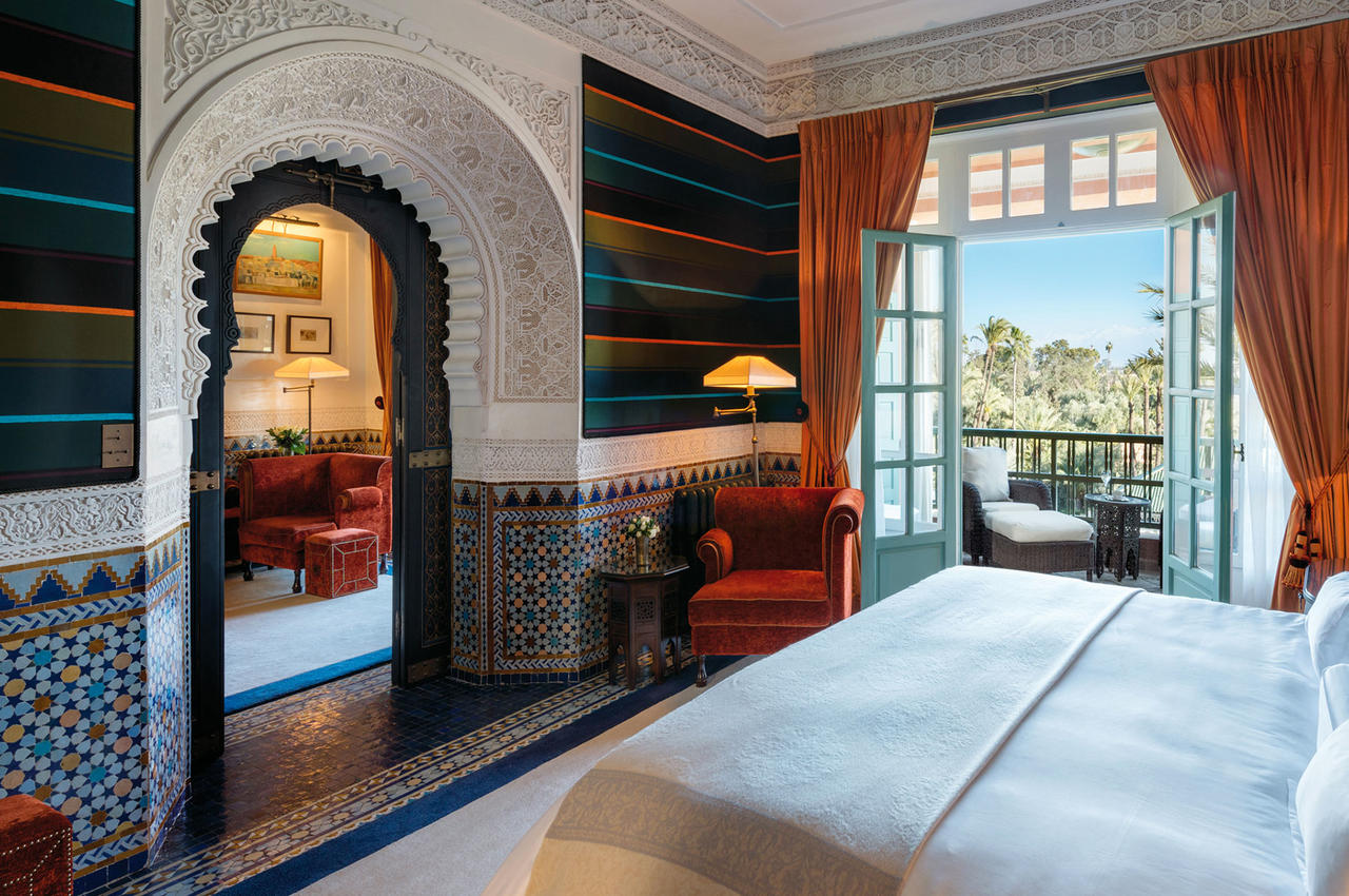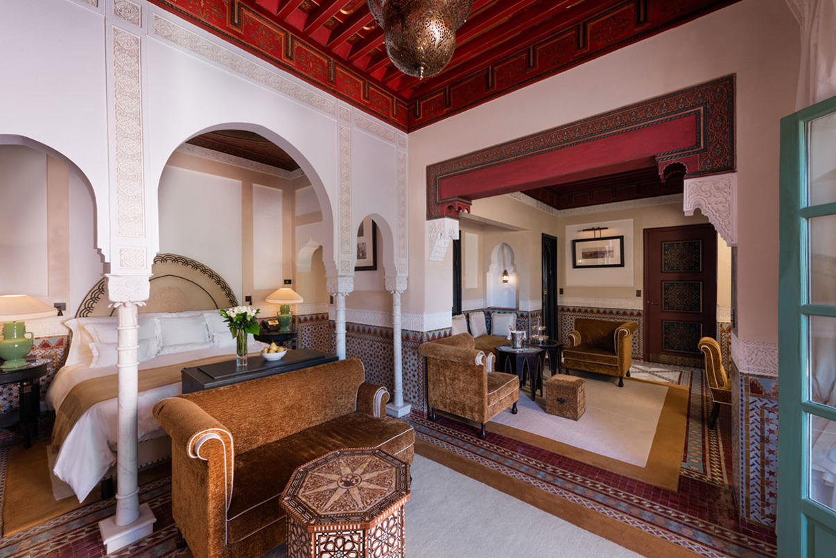 Luogo frequentato dall'élite mondiale dal 1923, La Mamounia è l’endroit in cui si rifugiò Winston Churchill per fuggire le pressioni della guerra dipingendo dalla sua suite le montagne dell'Atlante e dove magnati della finanza, atleti e star dello spettacolo si intrattengono oggi, tra gli splendidi interni o all'ombra degli ulivi vecchi di 700 anni piantati per un principe. Questo storico hotel marocchino, ben al di là di ogni categoria di stelle, ha riaperto le sue porte al pubblico nel 2009, stupendo il mondo dopo un lungo lavoro di ristrutturazione durato 3 anni ideato dal Maestro parigino Jacques Garcia. Interna ha eseguito, per le aree comuni e per tutte le camere e le suite, arredi e tappezzerie in un perfetto connubio di splendore marocchino e alta manifattura italiana. Molti sono stati gli oggetti selezionati dalla collezione monografica di Interna Les Grands Classiques de Jacques Garcia che si sono uniti agli arredi prodotti ad hoc. Nelle numerose zone living i preziosi velluti, i taffetà, i rasi, in un sapiente mix di colori nei toni del beige, dei rossi e dei verdi vibranti, esaltano la struttura creando una raffinata atmosfera arabo-andalusa; le camere e le suite, anch’esse di grande preziosità, sono invece pensate per trasportare l’ospite nella più assoluta pace e rilassatezza.