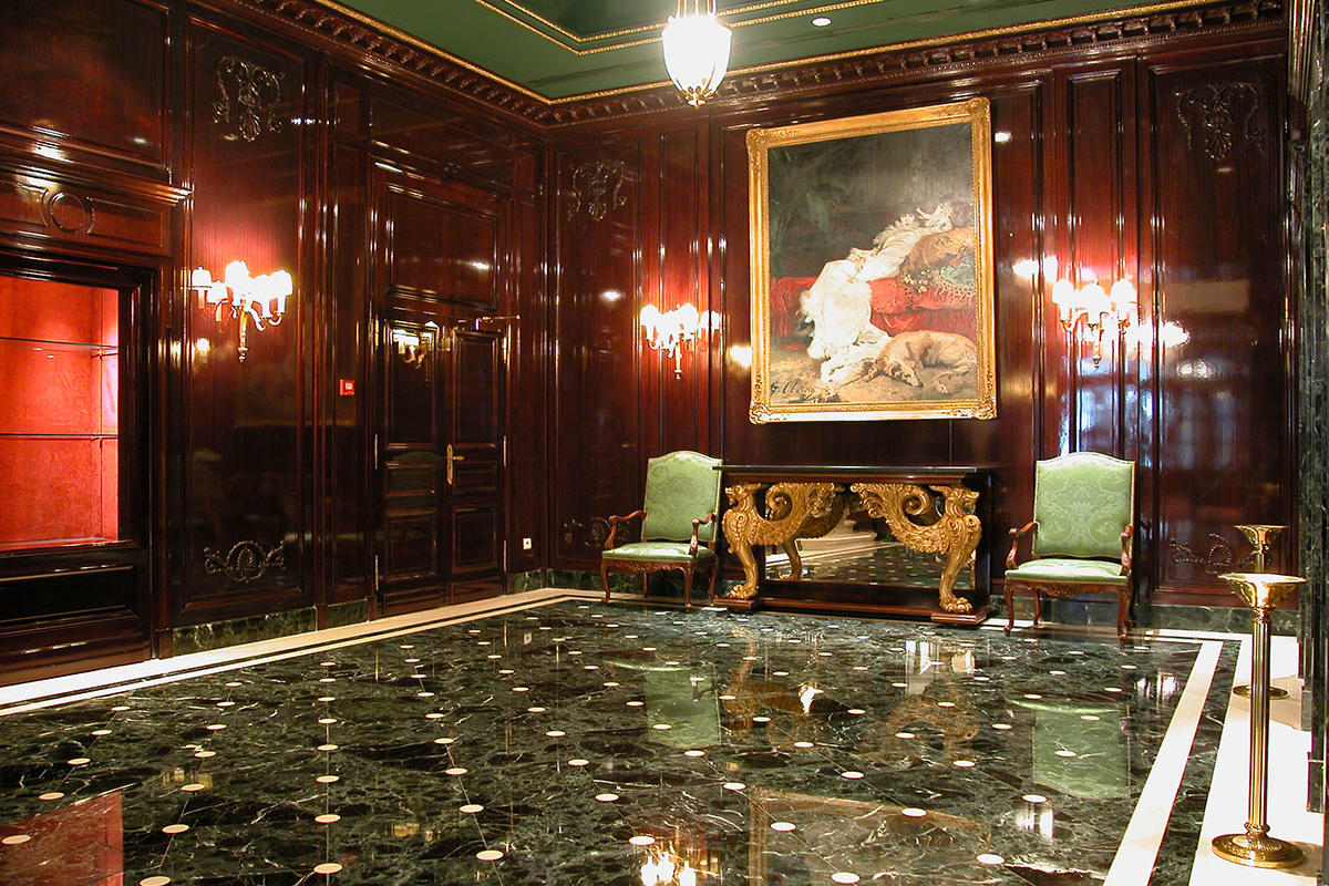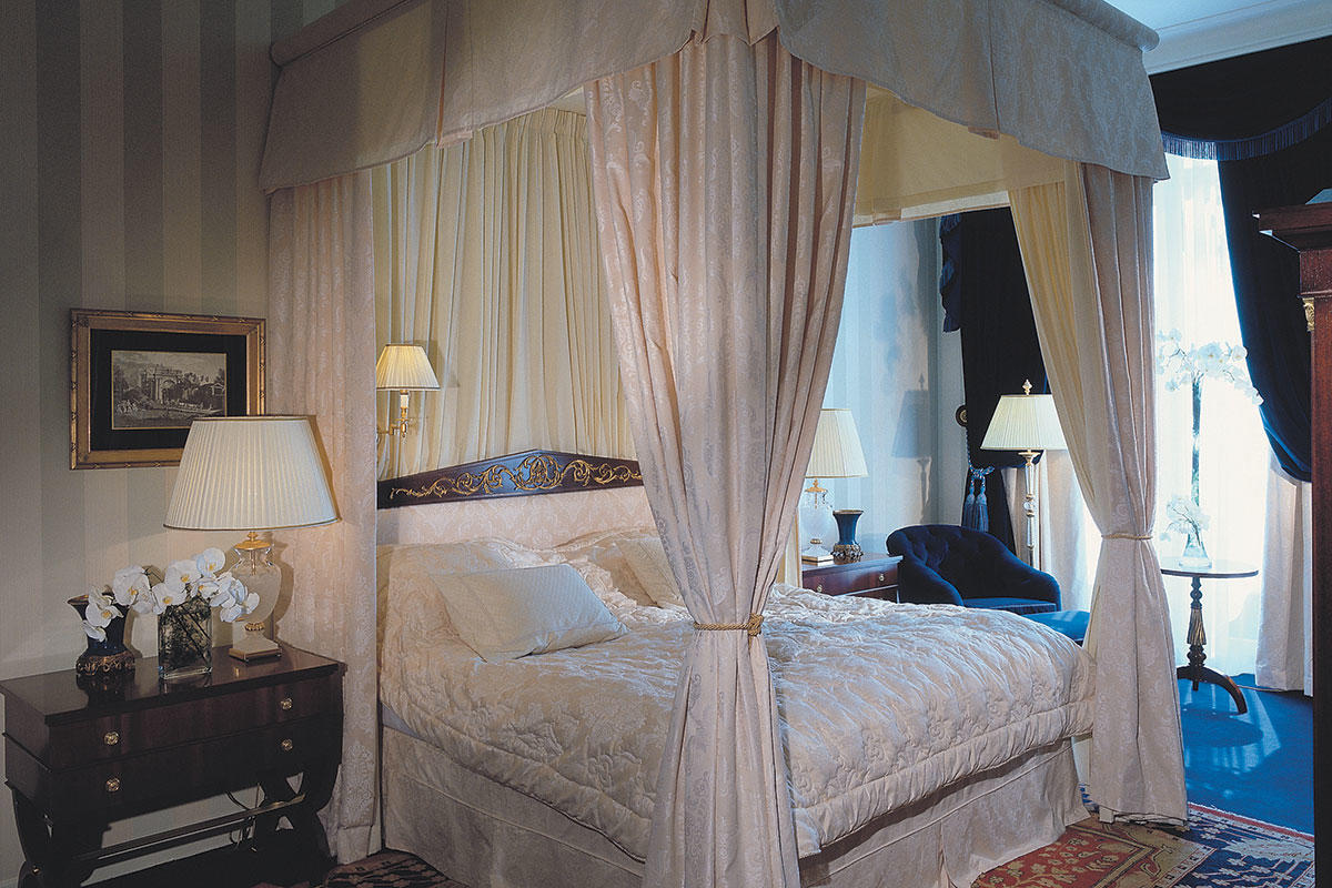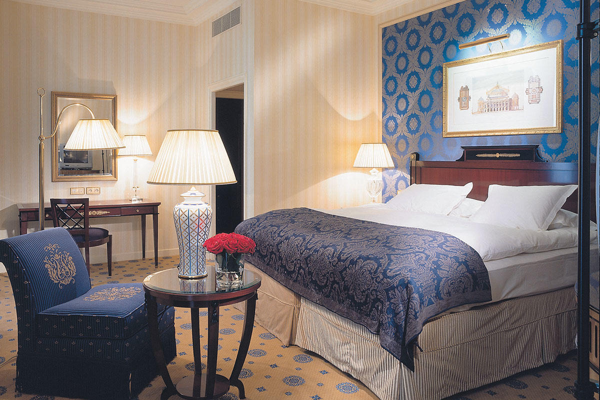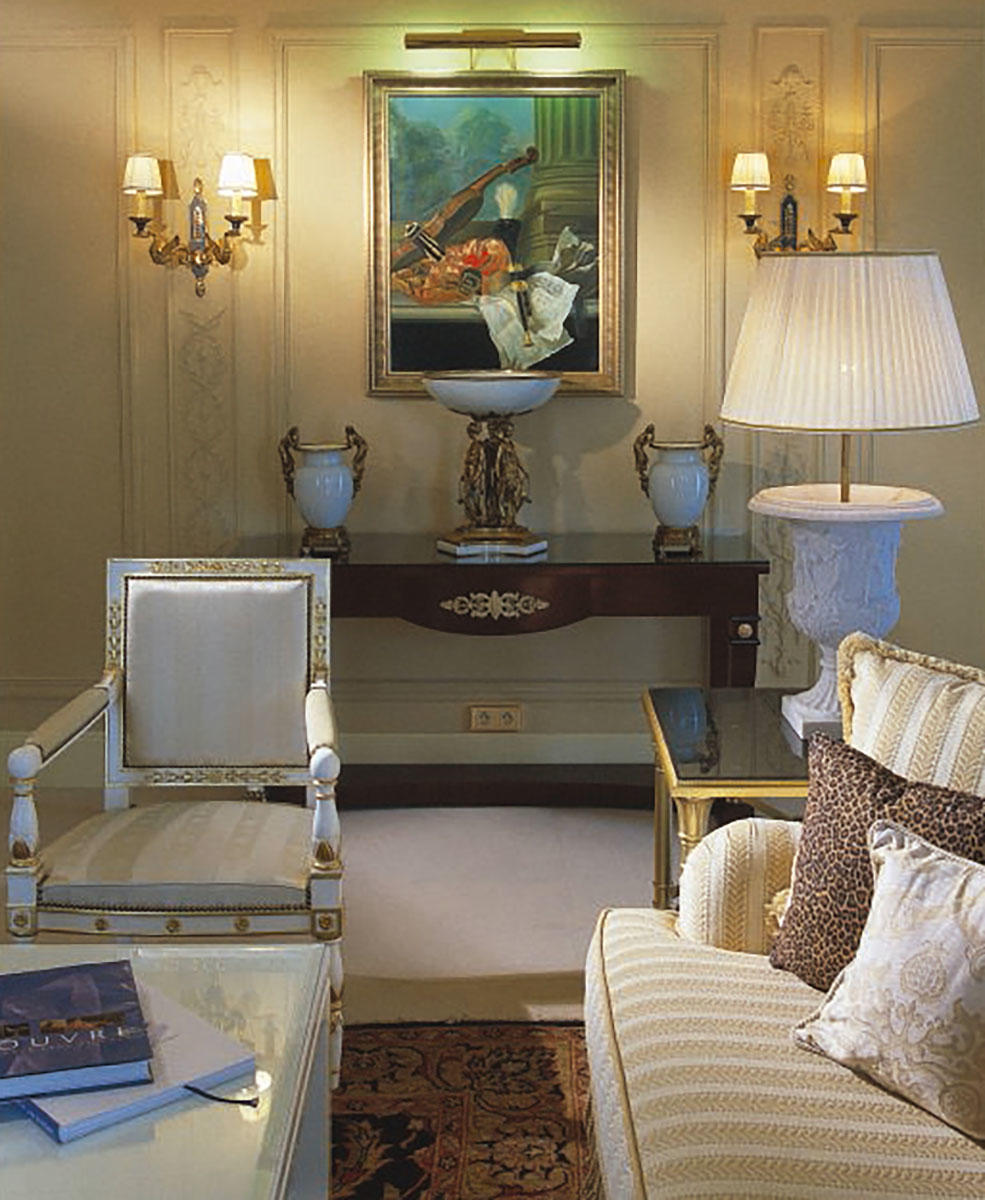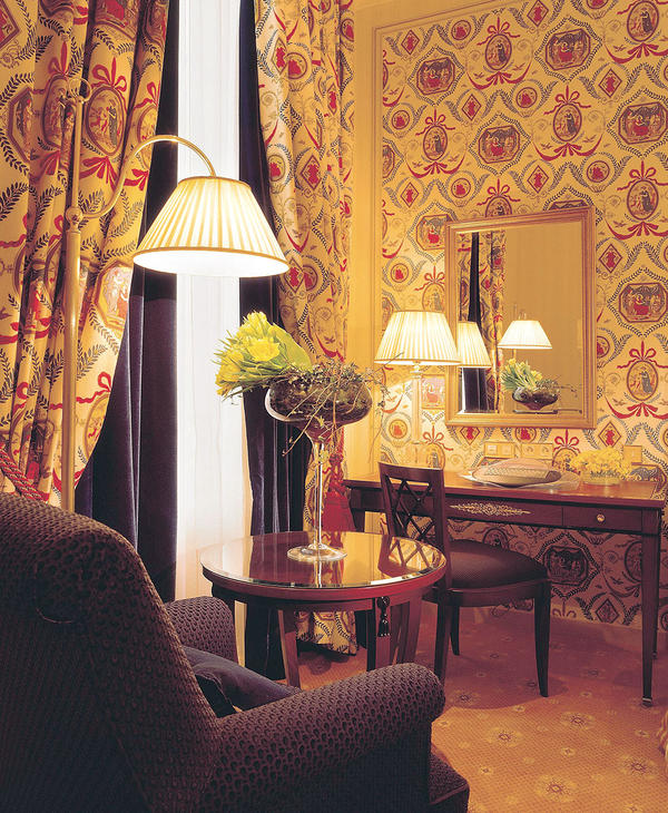 Interna ha prodotto per le oltre 400 camere e suite e per le aree pubbliche arredi in stile Impero francese ispirati agli originali del 1862. I mobili, parte in mogano con intarsi decorativi, parte laccati, sono stati arricchiti da decorazioni in foglia oro o in bronzo e impreziositi da ripiani in marmo o mosaico. I tessuti degli imbottiti e dei rivestimenti erano di gran pregio e riprendevano filologicamente le texture d’epoca.