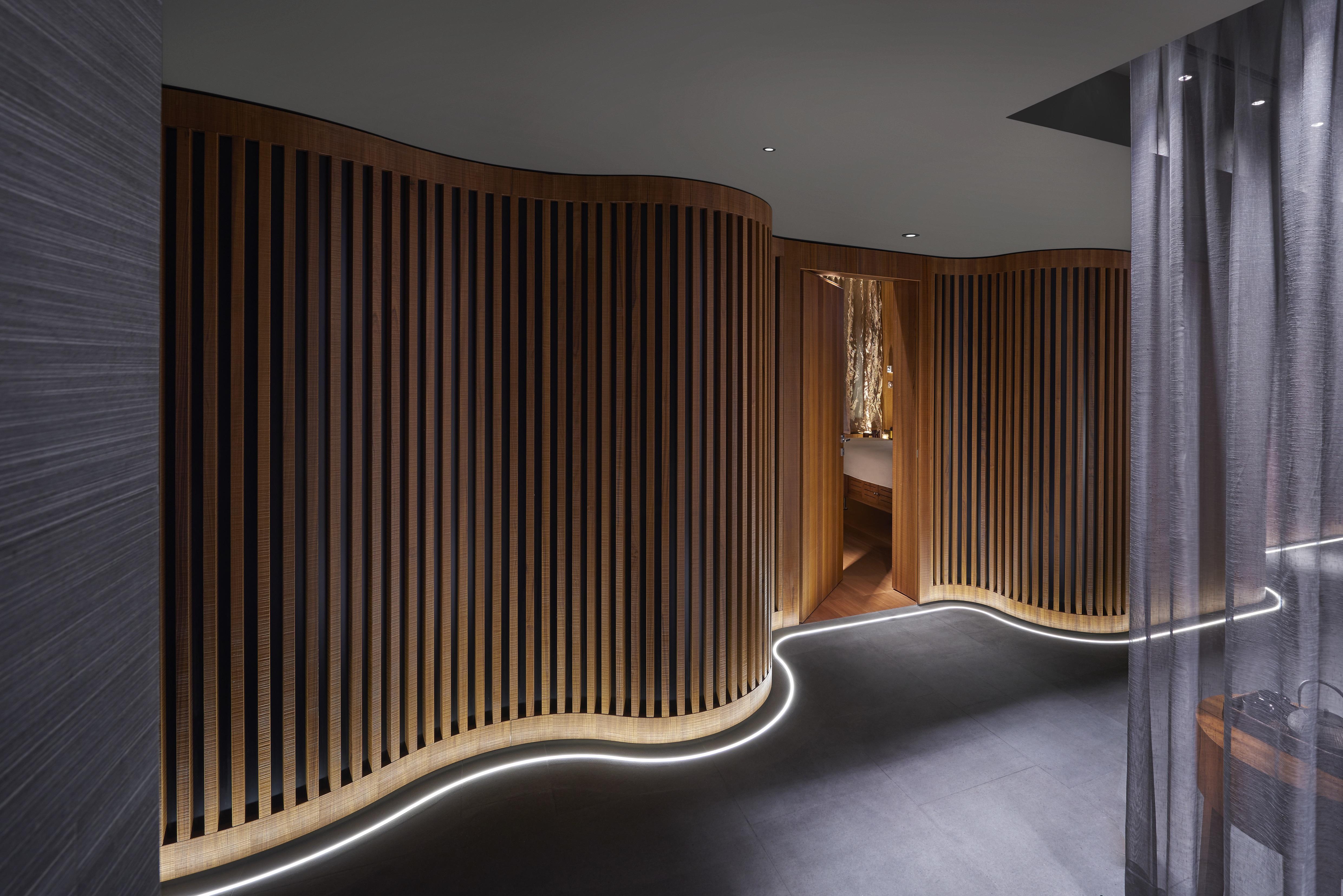 Interna, in meno di 12 mesi, ha eseguito su disegno esclusivo il fit-out completo degli spazi di questa spa di oltre 900 metri quadrati. Il contratto ha compreso la produzione e l’installazione chiavi in mano di tutte le aree. Sono stati installati: cabine trattamenti di cui una per massaggi Thai, una spaziosa VIP Suite e due suite per coppie, un beauty studio, un pedi-mani-cure studio, un hair salon, una spa boutique, una piscina coperta, un centro fitness, una gym, scale vetrate, bagni e vani di accesso. Dai pavimenti al soffitto, Interna si è confrontata con materiali e abbinamenti inusuali quali la pietra lavica unita, il teak in molteplici inusuali finiture, l’inox ad effetto martellato, il tessuto metallico effetto rame e il mosaico vetrato.
