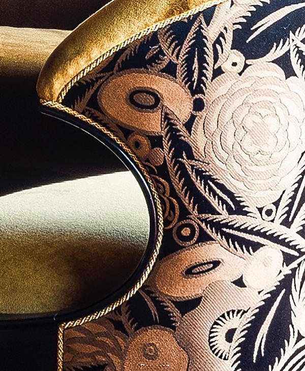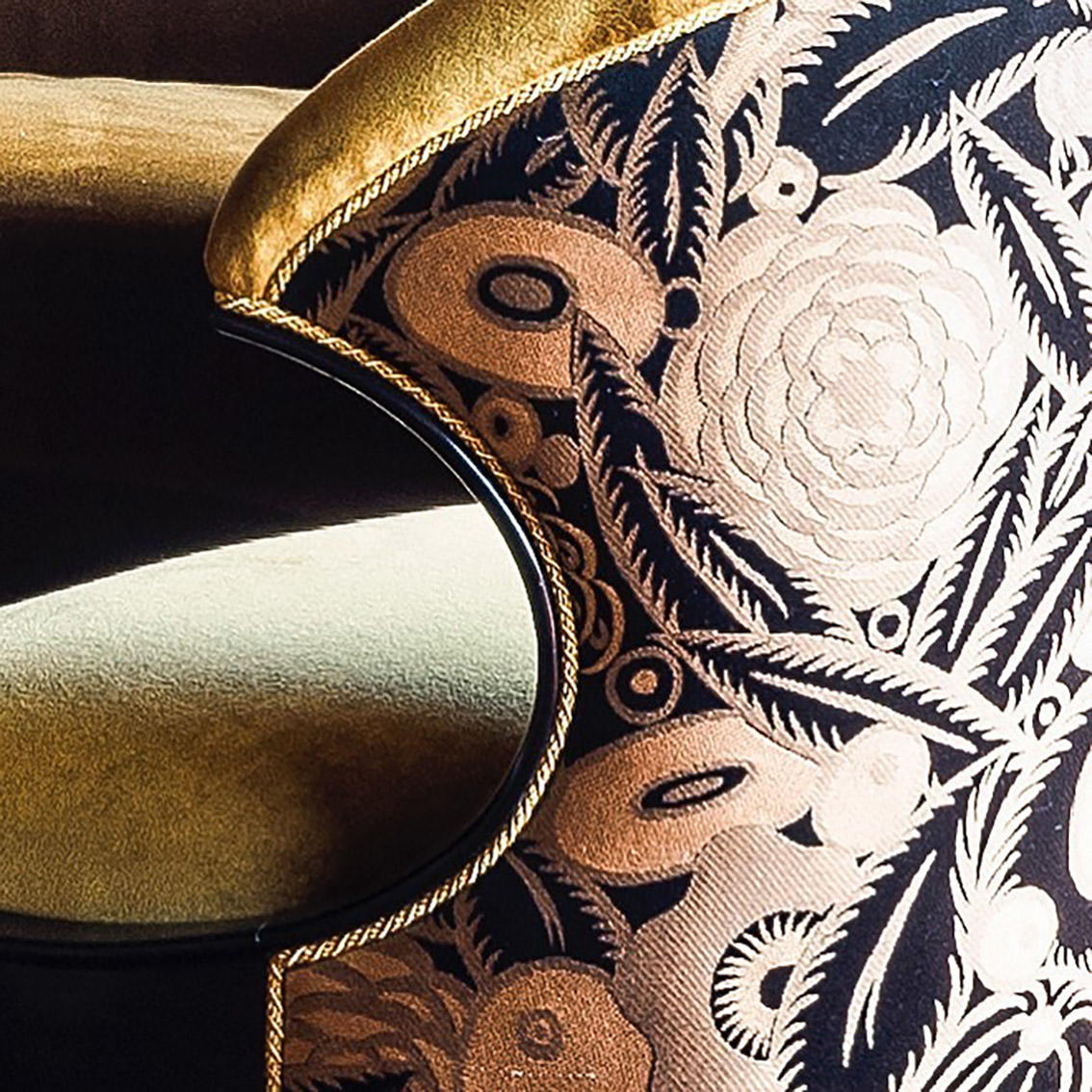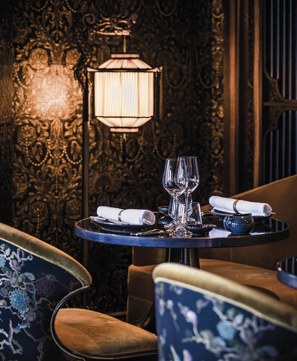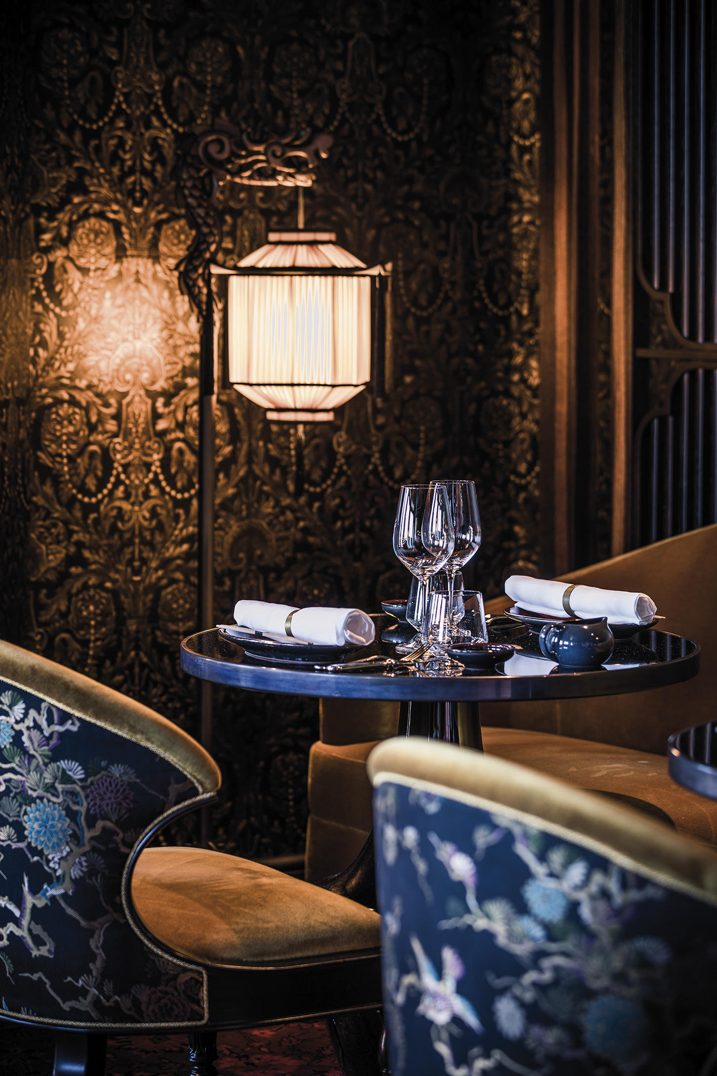 Per questo raffinato locale Interna ha eseguito in modo sartoriale tutte le poltroncine - selezionate dalla collezione Les Grands Classiques de Jacques Garcia e rese uniche dai preziosi velluti di rivestimento e da una particolare laccatura nera -.Si tratta di lussuosi pezzi unici che si inseriscono perfettamente in questo progetto di sofisticata ispirazione asiatica.
