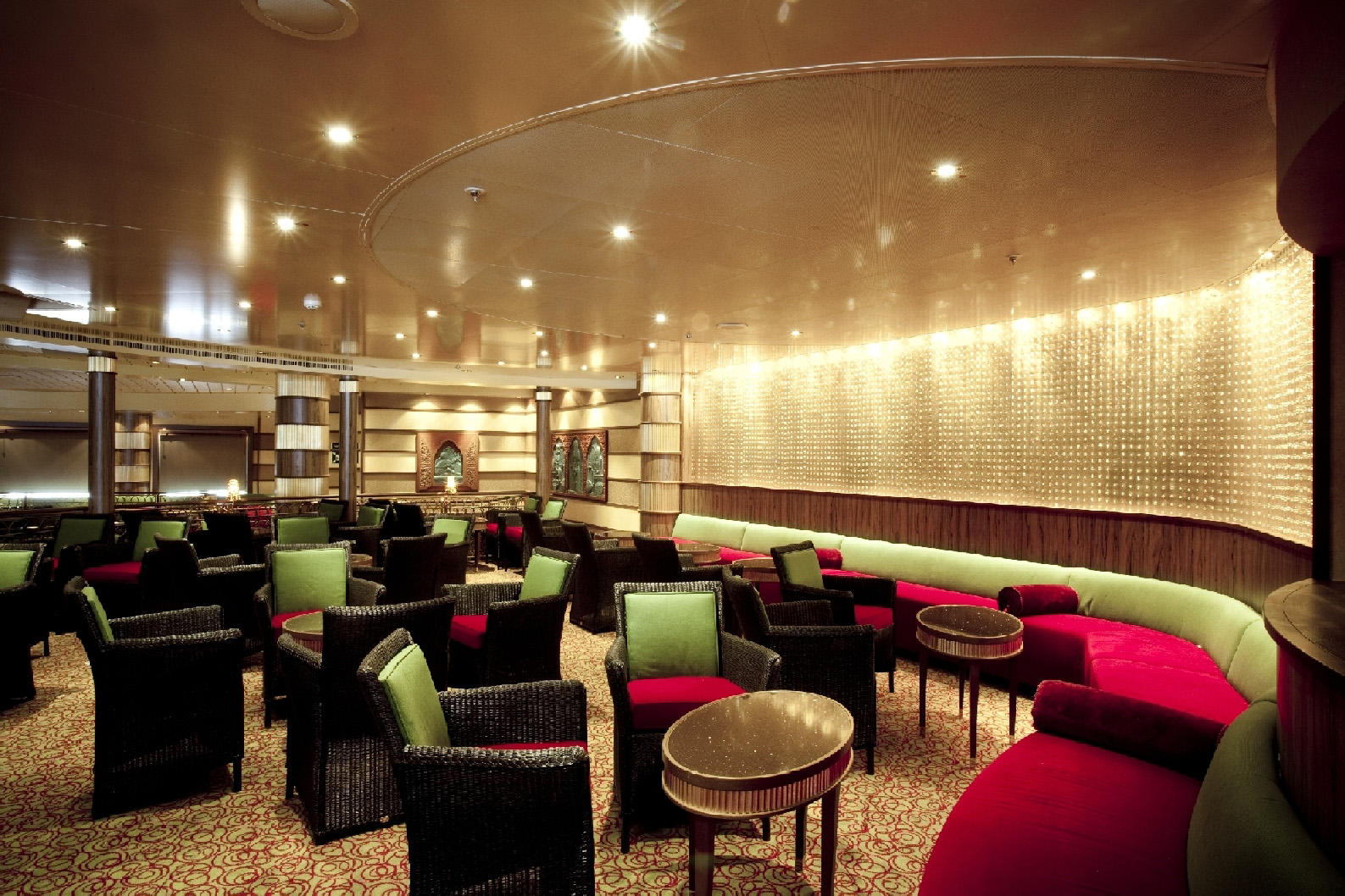 Per l’Azura, costruita presso i cantieri navali di Monfalcone, Interna ha eseguito l’allestimento di una delle aree più raffinate, la vasta Cabaret Lounge. Il progetto ha previsto l’esecuzione dei lavori chiavi in mano, formula che ha incluso progettazione esecutiva, fornitura di pavimenti, pareti, soffittature e gli arredi fissi e mobili, il montaggio e il collaudo finale.