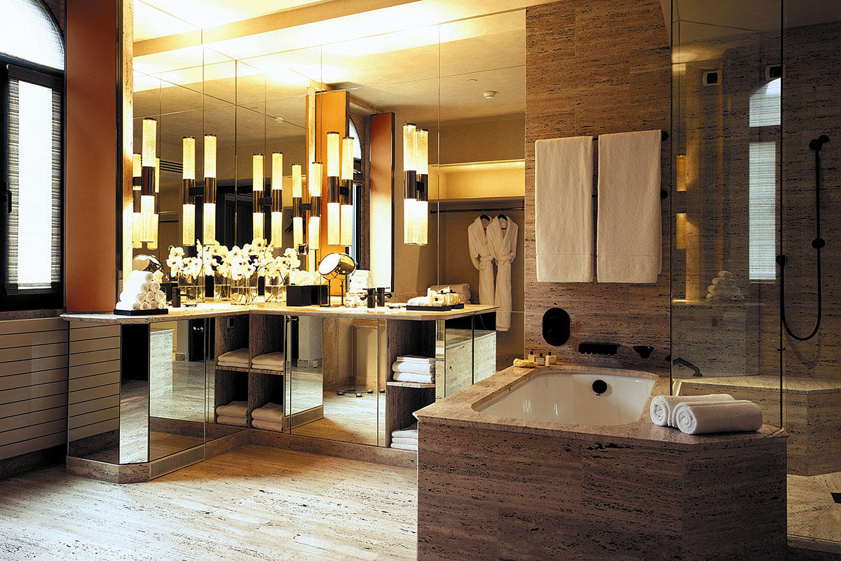 L’interior design dell’ hotel interpreta magnificamente il luogo, è la sua quintessenza e si esprime attraverso pavimentazioni in travertino, una maestosa cupola in vetro, e una haute couture totale per arredi e accessori all’insegna dell’unicità. Qui il lusso non è mai ostento ma, così come la città che lo circonda, è raffinato, con uno charme e un’eleganza unici.