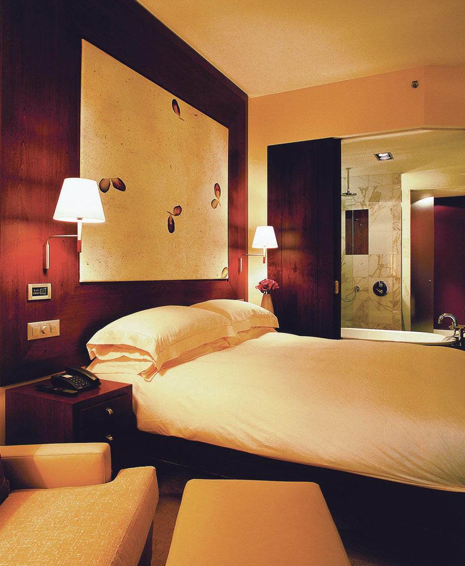 Palazzo moderno ed elegante, nelle sue camere l’architettura ultramoderna offre i più avanzati e tecnologici comfort. Ad Interna sono stati commissionati gli arredi chiavi in mano, tutti su disegno esclusivo, per le oltre 140 camere e suite e per le aree pubbliche (l’intera lobby, il bar, il ristorante, la sala da pranzo privata, l’enoteca e la sala convegni): items prodotti su disegno esclusivo e consegnati e installati in soli 6 mesi.