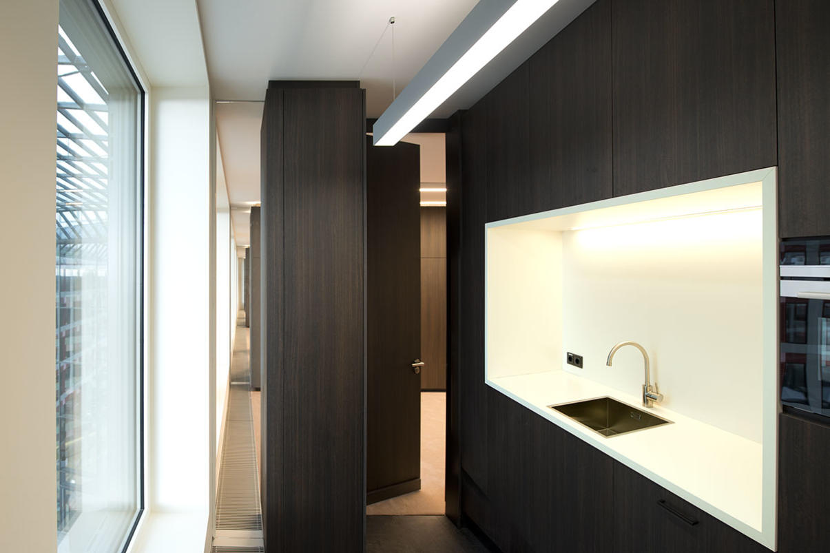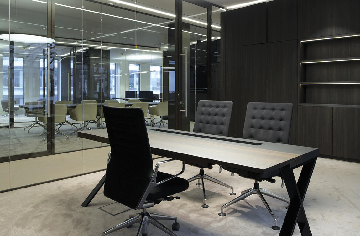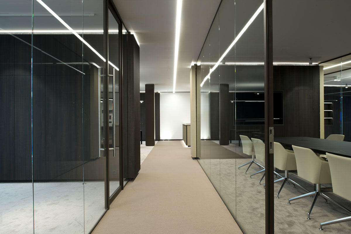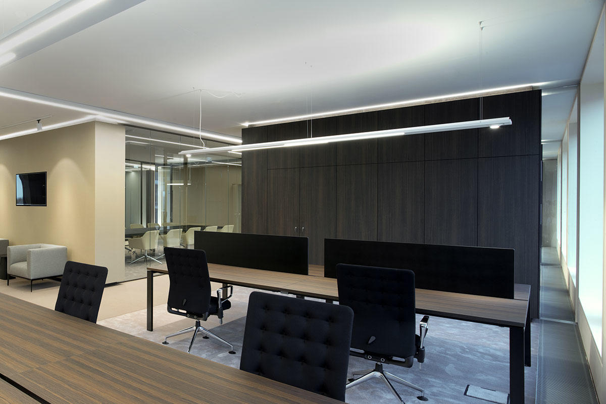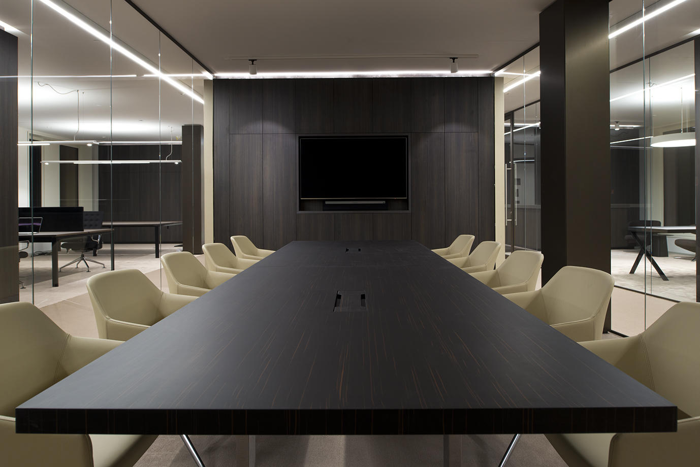 Interna è stata chiamata ad arredare questi straordinari uffici direzionali per i quali sono stati selezionati elementi di Logica office, uno dei marchi di Interna Group. Sono stati scelti arredi direzionali della linea Tiago e arredi executive e operativi della collezione Ketchikan, il tutto personalizzato per materiali, finiture e dimensioni. I tavoli riunione sono stati prodotti con piani in legno di ebano e basi in acciaio inox lucido. Le scrivanie executive e operative e i mobili contenitori degli openspace sono in rovere tinto e spazzolato a campione.