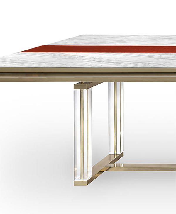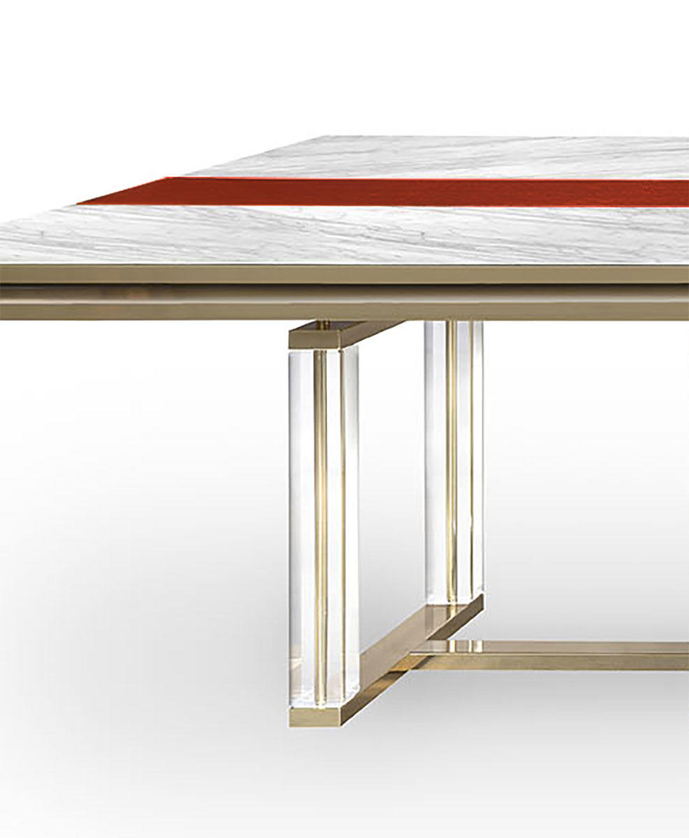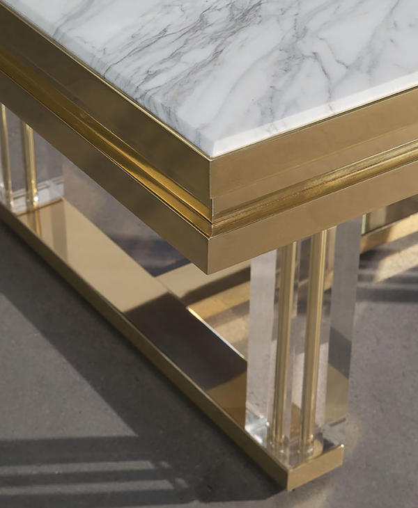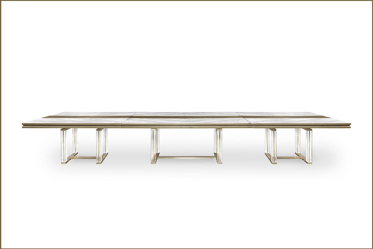 Il piano, lungo più di 5 metri, è realizzato in marmo e legno di quercia in finitura dorata,
