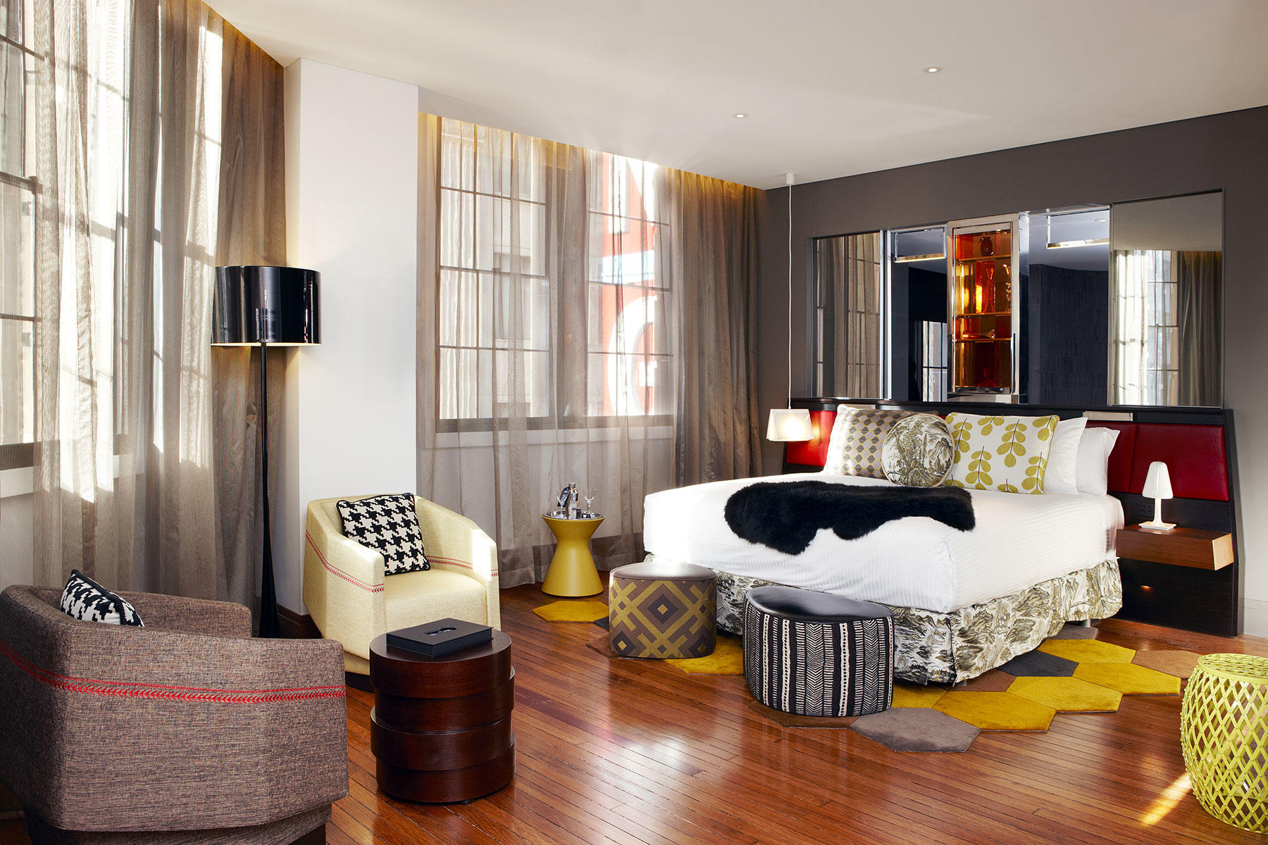 L’hotel più cool di Sydney, il nuovo QT, è all’interno degli storici palazzi del Gowings e State Theatre. Interna, in collaborazione con la propria consociata di Shanghai, Interna China, è stata scelta per la realizzazione, in esclusiva, di tutti gli arredi sciolti per le camere e per alcune selezionate aree pubbliche. Lo studio Indyk Architects, che ha progettato e disegnato in esclusiva le 200 camere e le relative aree pubbliche, ha immaginato come fruitrice degli spazi una élite creativa ed esclusiva, che apprezza “l’arte” del soggiornare in hotel, l’eccitazione di una nuova esperienza, il confort che stupisce. Il progetto d’arredo mette in risalto un nuovo linguaggio estetico fatto di eclettismo ed estro ad ogni angolo. Le camere sono tutte diverse per metratura e tutte uniche: diverse le cromie, diverse le tipologie tessili, una gamma variegata di corpi illuminanti fra cui sospensioni, lampade d’appoggio, lampade a muro. E poi tendaggi particolarissimi e un intreccio di essenze per i mobili fissi e sciolti. In questo mondo così inusuale tutto è stato eseguito in modo esclusivo e al massimo livello qualitativo.