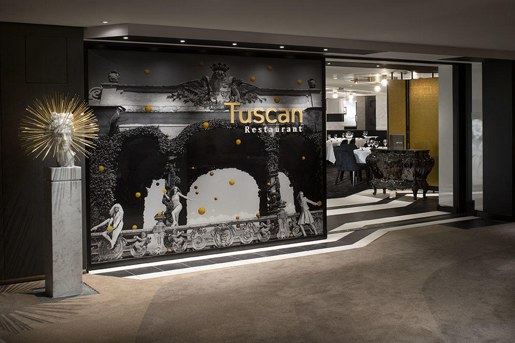 Per ognuna delle quattro navi gemelle Celebrity, Edge, Apex, Beyond e Ascent, la fornitura di Interna ha interessato circa 1400 metri di superficie e ha compreso l'allestimento del ristorante Tuscan, ambiente dall’atmosfera classica con rimandi alla moda e all'industria cinematografica del primo Novecento italiano, e del ristorante Normandie, uno spazio più moderno e frizzante che porta alla mente lo charme primaverile di una Parigi elegante e glamour.