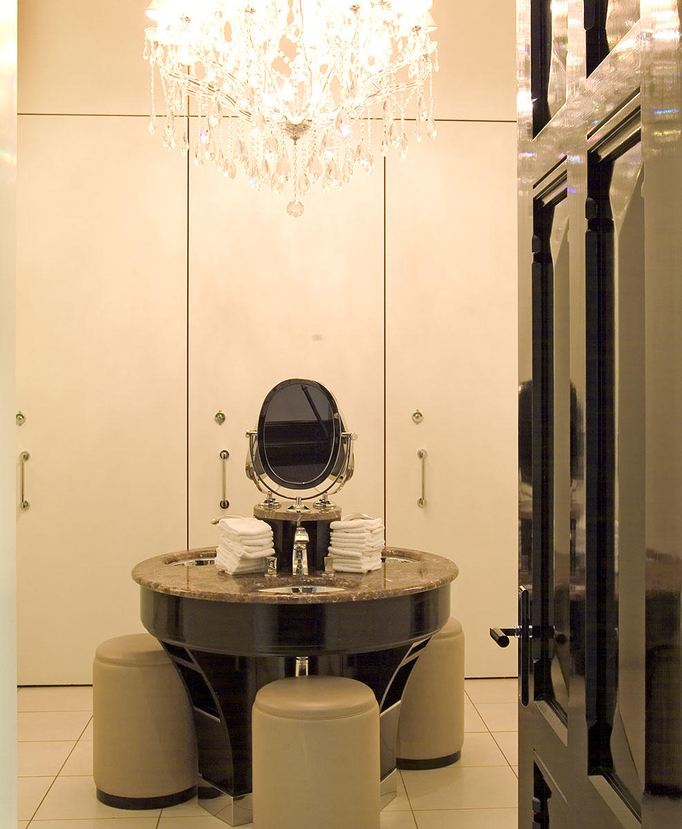 Tutti i mobili sono stati prodotti da Interna, sia per le aree pubbliche (bar, reception, ristorante, lounge, lobby e bagni) sia per le splendide 40 camere e suite, ognuna con una propria peculiare identità. Sia i prodotti creati su misura sia quelli selezionati dalle collezioni di Interna sono stati prodotti con i più alti standard di qualità, con materiali accuratamente selezionati, alcuni dei quali di gran pregio e inusuali, come la madreperla o il crine di cavallo.