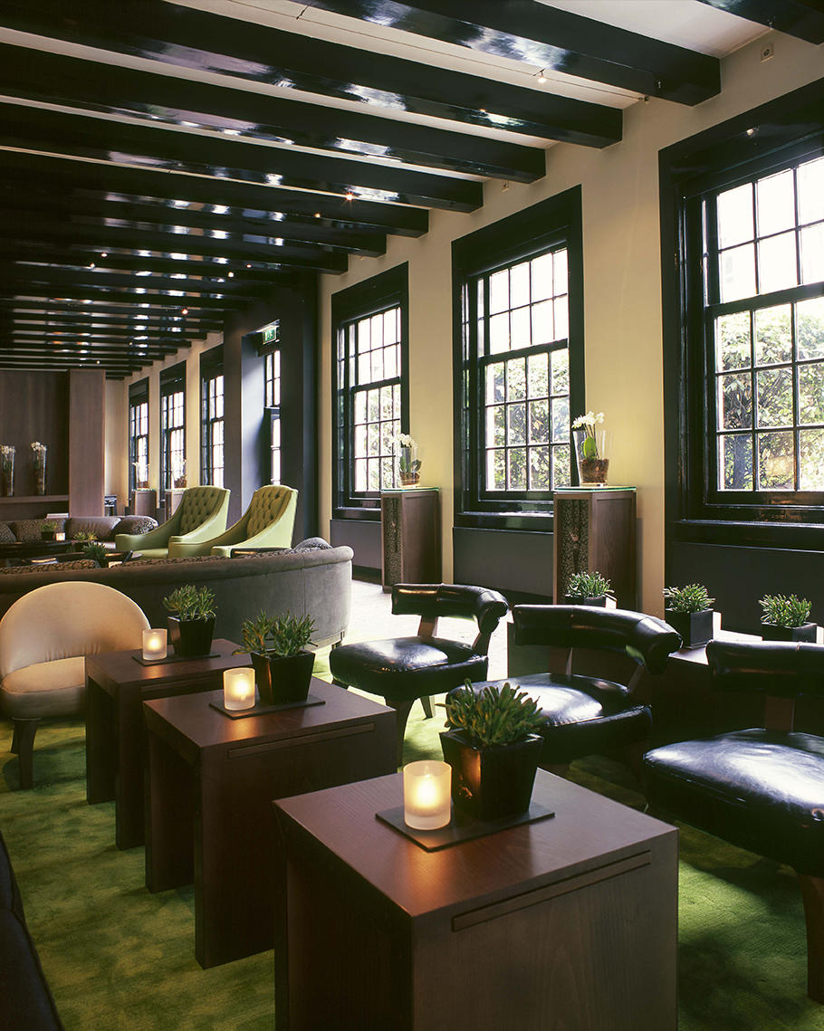 The Dylan, posto all’interno di uno sfarzoso edificio del XVII secolo che in origine è stato sede del primo teatro di Amsterdam, è affacciato su uno dei più suggestivi canali della città. Nel 2006 ha subito un integrale restauro, soprattutto con riferimento al piano terra. Interna è stata protagonista del rinnovo delle aree pubbliche e, parzialmente, delle camere. Sono stati utilizzati ovunque materiali preziosi con accostamenti inusuali, molto ricercati, come pelle di razza, pergamena, madreperla, abbinati a finiture laccate a pennello dai toni scuri e molto brillanti.