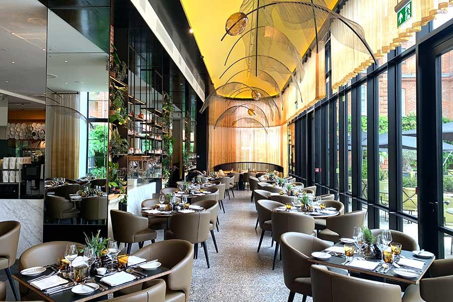 Per questo gioiello Interna UK ha creato i mobili free-standing -sedie, tavoli, banquettes – il tutto confezionato con rivestimenti tessili dalle cromie delicate e morbide.