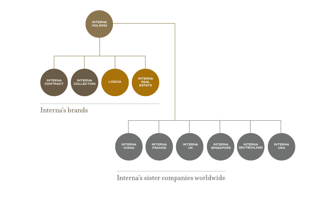Four brands | Il Gruppo opera attraverso quattro brand solidi e complementari controllati al 100% da Interna Holding - Interna Contract, Interna Collection, Logica e Interna Real Estate - attivi a vari livelli, dal completo fit out all’arredamento, fino agli investimenti, nella nicchia di mercato dell’ospitalità ricercata.