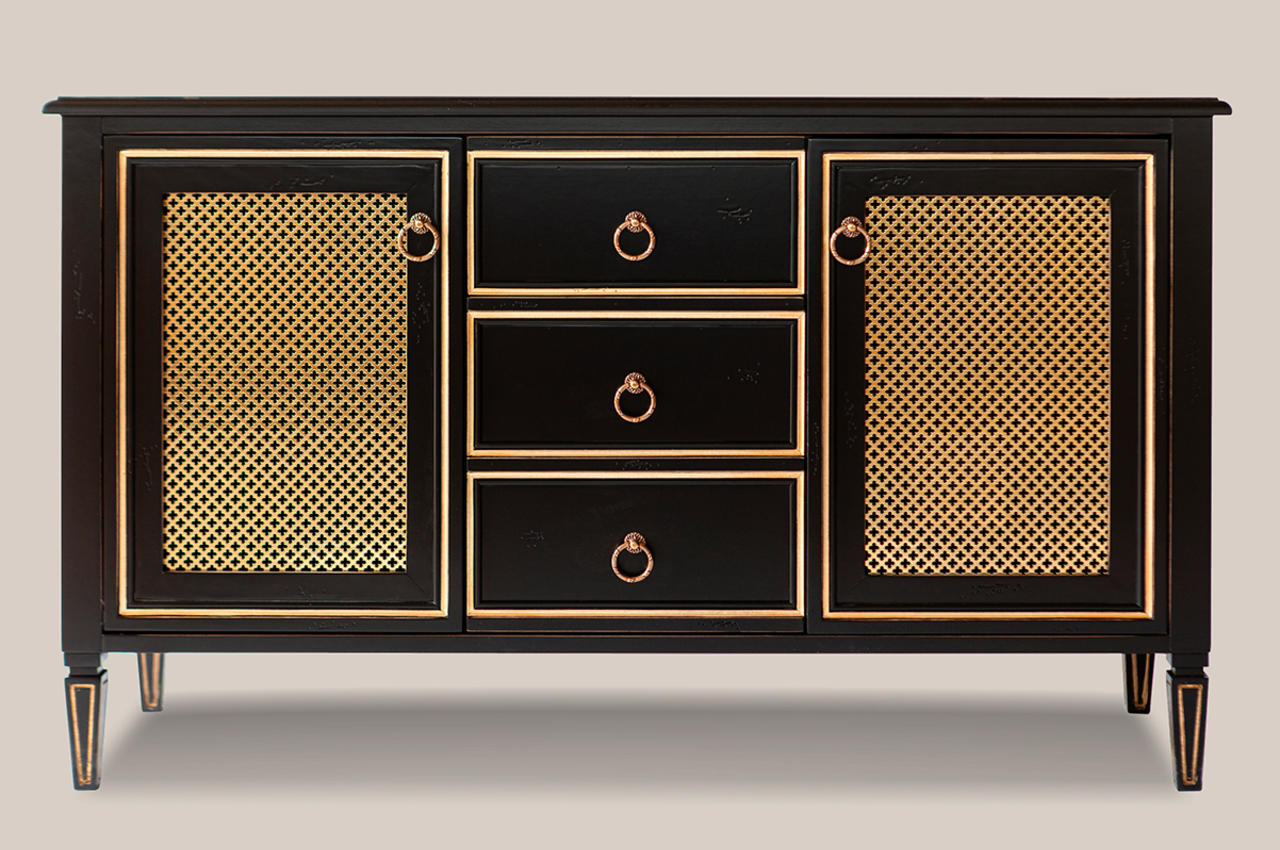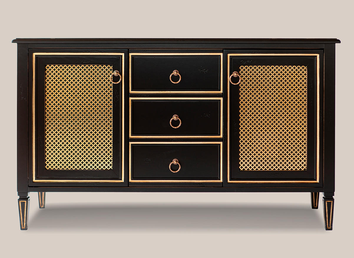 Per le camere, sfida del tutto singolare e alquanto intrigante, Interna ha prodotto su misura arredi opulenti e massimalisti con un tocco di décor francese del XVIII secolo: giroletti, lussuose poltrone con borchie in metallo inserite a mano ad una ad una, mobili TV con un scintillante laccatura nera francese, un’edizione speciale della sedia Leon dalle collezioni di Interna. Qui ogni singola lavorazione evidenzia una manifattura da haute couture, ogni materiale è accuratamente modellato per adattarsi alla maestosità del luogo.
