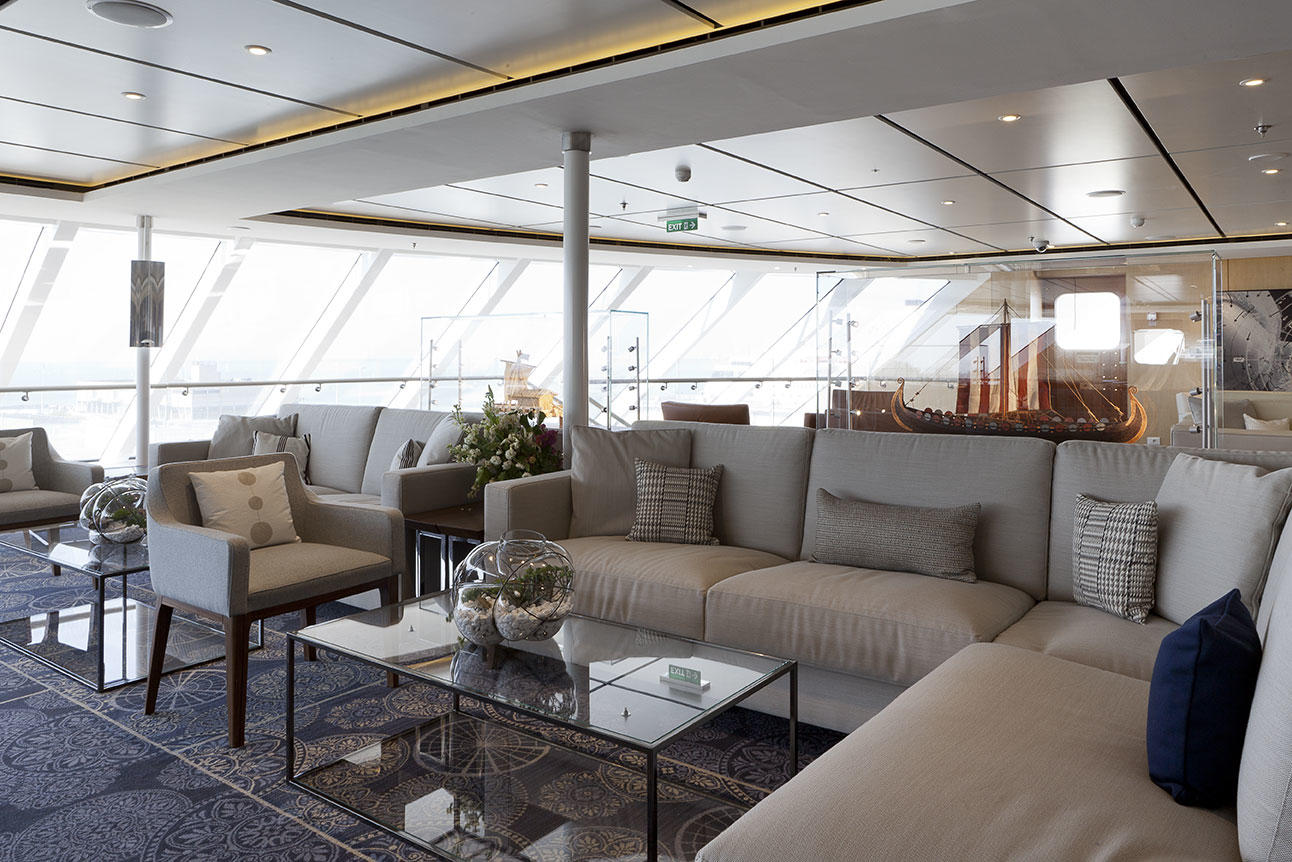 Interna è stata chiamata ad allestire, chiavi in mano, le aree di maggior prestigio delle quattro navi gemelle Viking Star, Viking Sea, Viking Sky e Viking Sun, vascelli dalle dimensioni contenute pensati per clienti di estrema nicchia che richiedono design, comfort e servizio a bordo ai massimi livelli. Nel dettaglio, Interna ha operato sul ponte 2 (Multifunction Theatre and dressing rooms, Theatre lobby bar, Cinemas Starboard & Port, Theatre stores, Broadcasting – Office; Entertainment Lounge; The Street, Fashion Retail & Jewellery, Stores), sul ponte 7 (Explorer Lounge, Owner Suite & Balcony, Owner Suite Sauna, Buffets & Stores), sul ponte 8 (Explorer Lounge). Gli allestimenti, completi e dal design esclusivo, sono stati prodotti secondo standard qualitativi elevatissimi e in conformità con la rigida normativa navale in tema di sicurezza, salubrità, reazione al fuoco.
